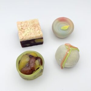 秋の水(右上)創作練り切り、中は小豆こし餡
