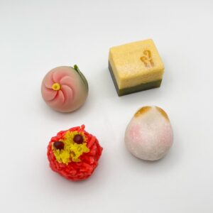 玉椿(左上)創作練り切り、中は小豆こし餡