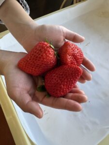 イチゴは収穫初期に大粒が多く、その後だんだんと小粒(苺大福に適したサイズ)が出てくるようです。